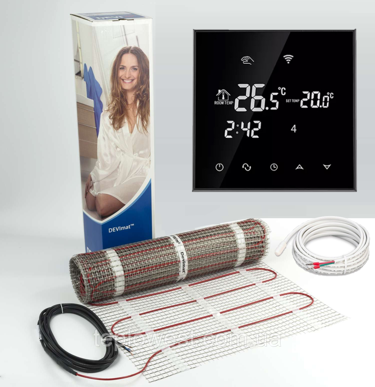ДВОЖИЛЬНИЙ НАГРІВАЛЬНИЙ МАТ DEVIMAT DTIR-150 з ТЕРМОРЕГУЛЯТОРОМ ECOSET BHT 800 WI-FI